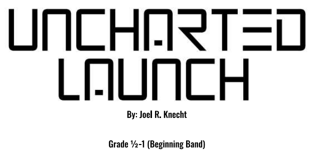 Uncharted Launch is a shortened version of the beginner friendly tune Uncharted. This shortened version contains the launch and the heroic climax and cuts out the lyrical middle section. This fast paced intense tune is a perfect length for younger ensembles where the longer edition would be too challenging.